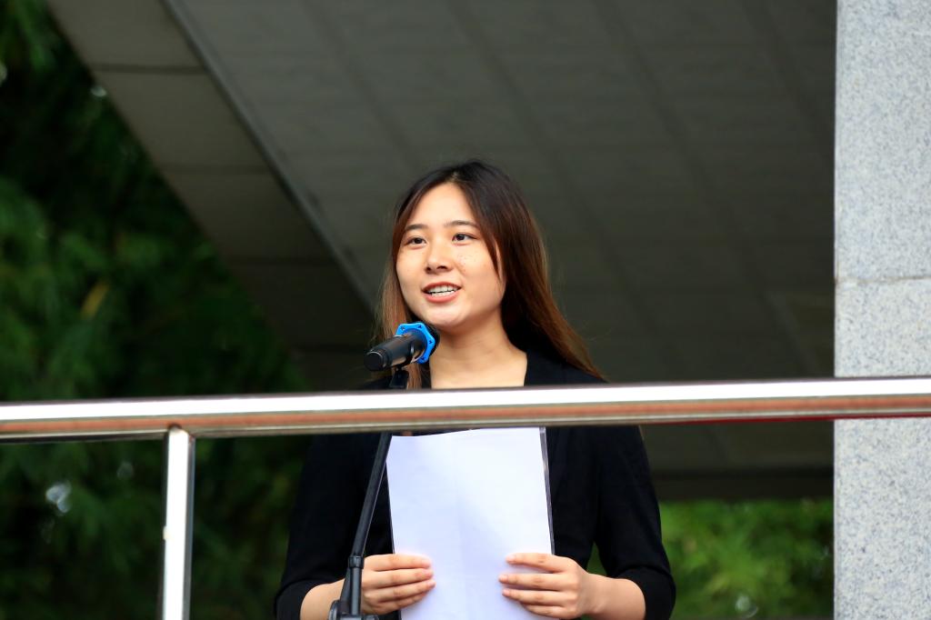 信息学院数字媒体技术专业2018级唐晓倩同学作为老生代表发言。