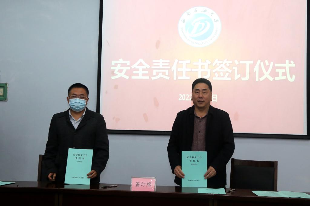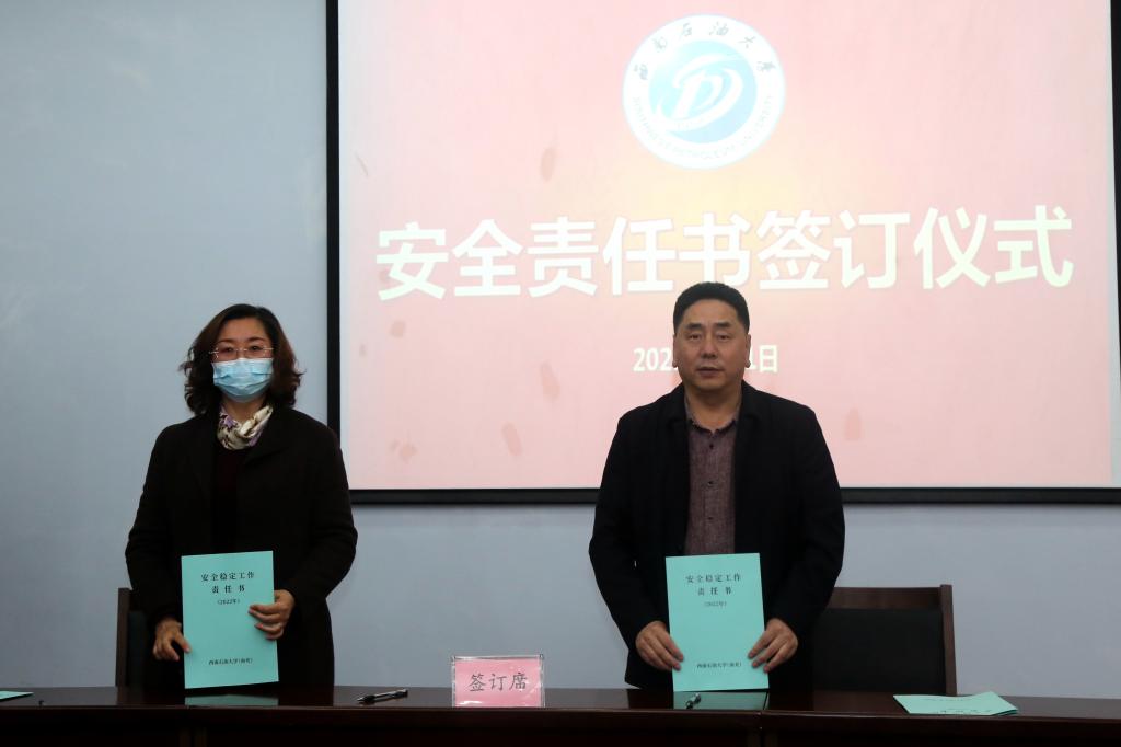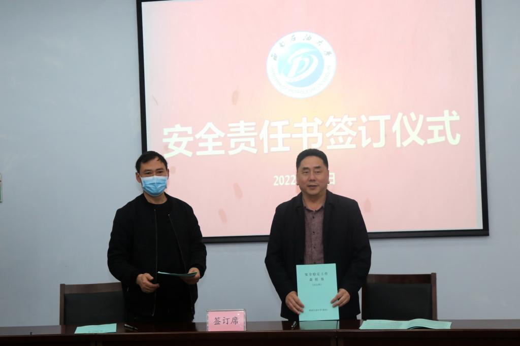 张光君代表校区党委与校区各综治单位签订了《综治、安全、消防工作责任书》。
