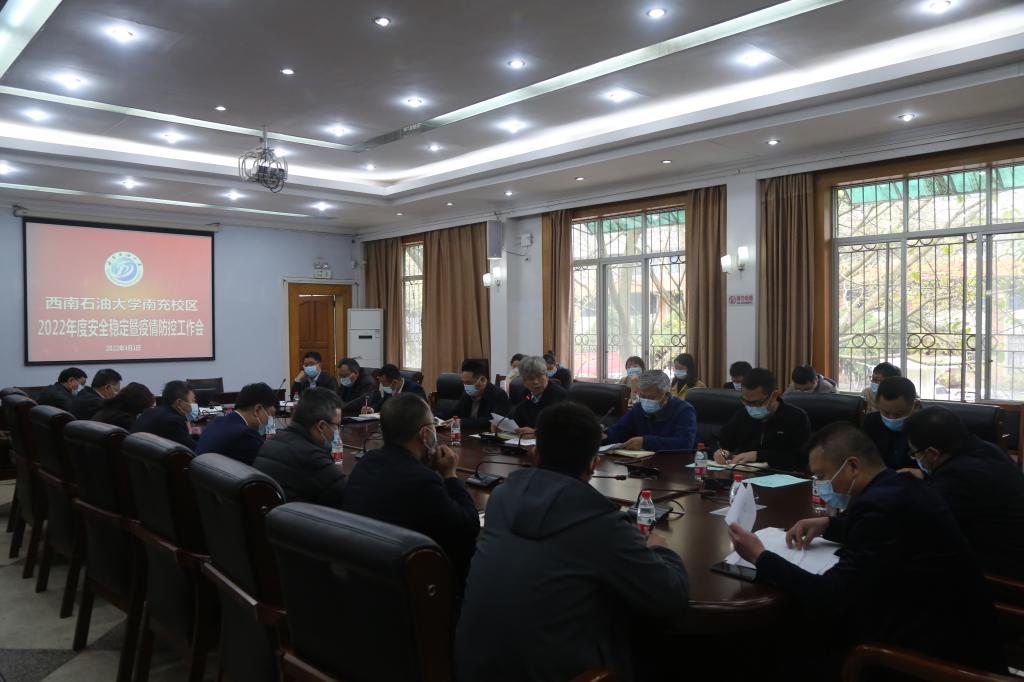 赵刚传达了学校2022年度安全稳定与信访工作会议精神,宣读了《西南石油大学南充校区关于表彰安全稳定工作先进单位及个人的决定》。保卫部副部长李文介绍了校区2022年度综治工作及考核办法,校区疫情防控办公室主任吴金城传达了上级疫情防控有关工作要求。