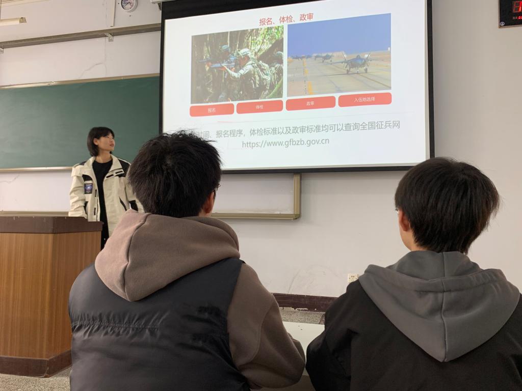 经济管理学院学生办公室(团总支)主任杨智光说,举办此次征兵动员与军旅生活分享会,能让学院更多同学立志参军的同学进一步了解到大学生应征入伍的重要意义,激发学生有志青年积极投身国防事业、献身国防事业的热情。今后,学院将继续强化宣传、细化服务、重点突破,推动应征入伍工作走深走实。(图/文 胡朝伟 宿帅杰)