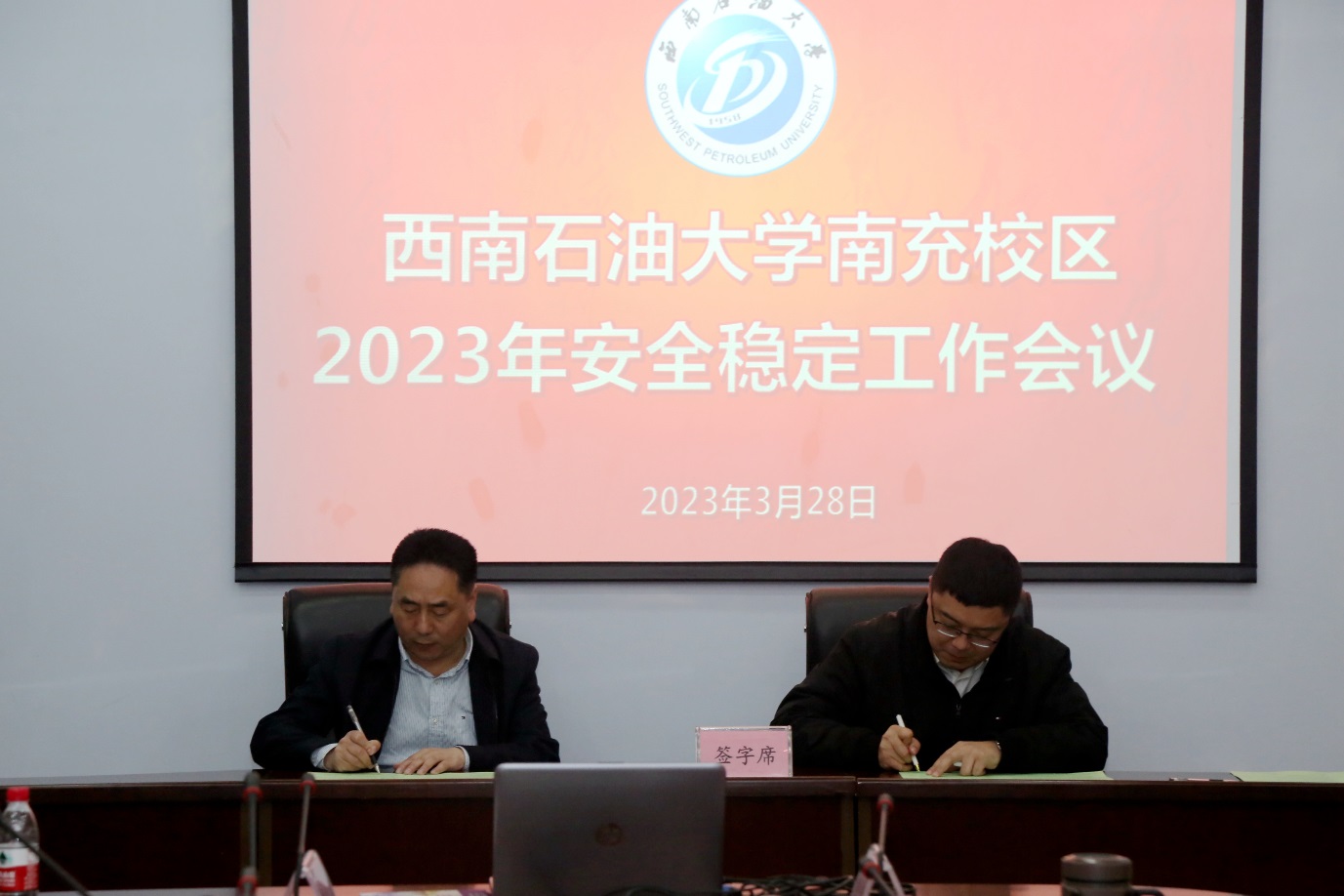 校长助理、南充校区党委常务副书记张光君代表校区党委与各安全稳定责任单位签订了《2023年度安全稳定责任书》。