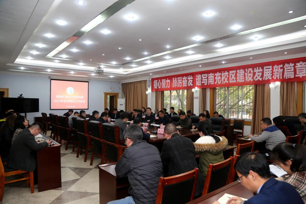 3月28日,南充校区召开2023年安全稳定工作会,校长助理、南充校区党委常务副书记张光君出席会议并与各安全稳定责任单位签订《2023年度安全稳定责任书》,南充校区副校长覃鸿飞主持会议。