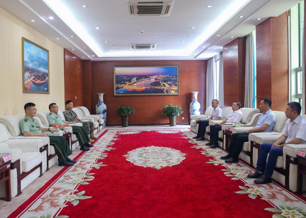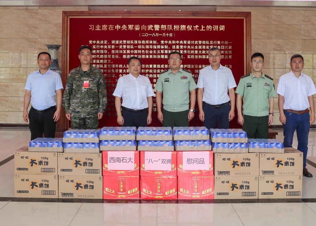 7月25日,在中国人民解放军建军97周年即将到来之际,受学校党委行政委托,南充校区党委常务副书记方可赴武警南充支队看望慰问部队官兵,共叙军民鱼水深情。党政办公室副主任李平、安全与后勤保障部副部长陈万林参加慰问。
