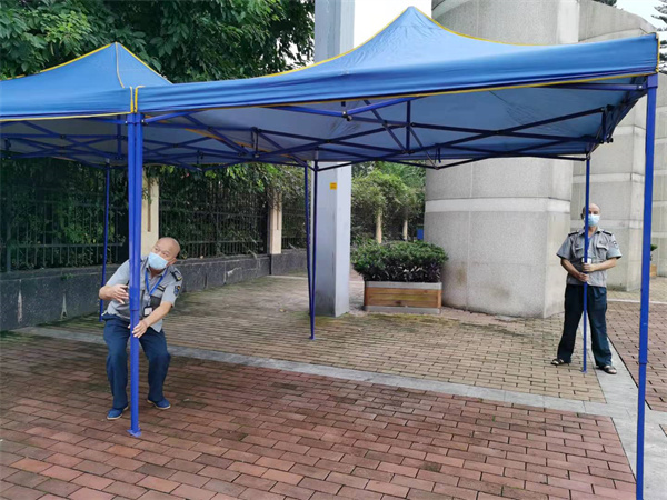 保卫部职工搭建迎新帐篷
