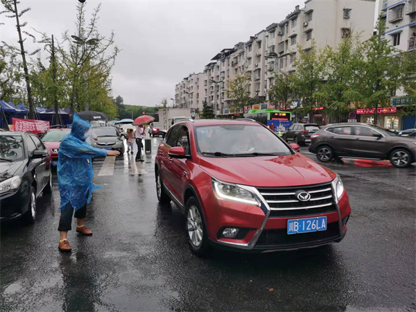 保卫部职工指挥新生家长车辆有序在临停区停放