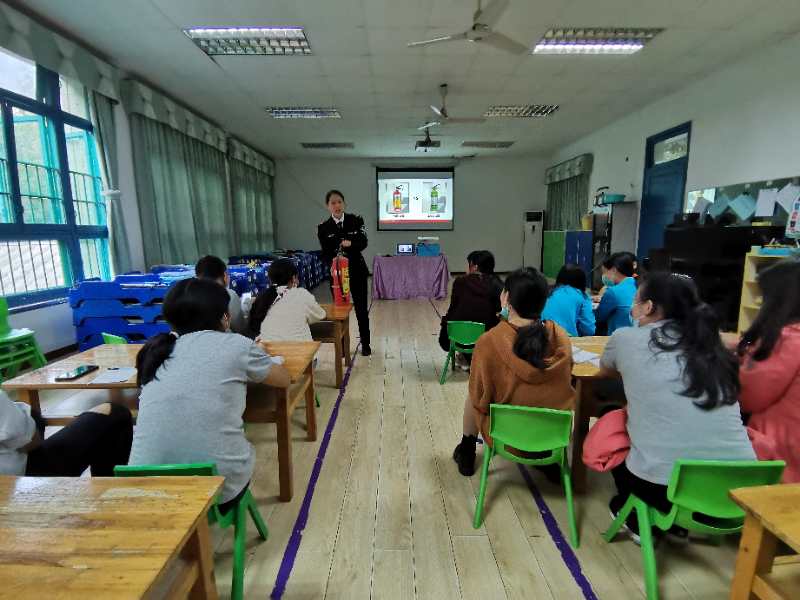 为进一步提高幼儿园老师消防安全意识,增强自防自救能力,全面推进校园消防安全宣传工作,使教职工掌握防范、灭火、组织幼儿逃生的方法。9月23日下午,保卫部安全消防科邀请南充市政安消防宣教中心何菊教官到幼儿园,为幼儿园老师作了一场消防安全知识培训讲座。