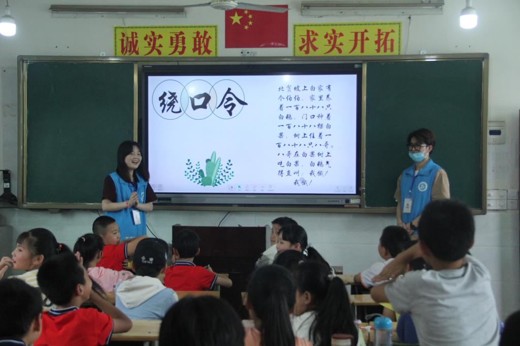 本次支教活动形式多样,内容丰富,成功提高了小朋友们的课程参与度,通过诗歌朗诵和绕口令环节,小朋友体会到了讲普通话的乐趣。课堂上,小朋友们积极发言,互相纠正发音,使课堂氛围活跃了起来。其中,志愿者以问答形式,对普通话中容易犯错的平翘舌、边鼻音等特殊音节进行重点教学,小朋友积极主动地用普通话与志愿者交流,及时更正自己的发音问题,课堂结束后,多数小朋友已经能够更加流畅地使用普通话对话。
