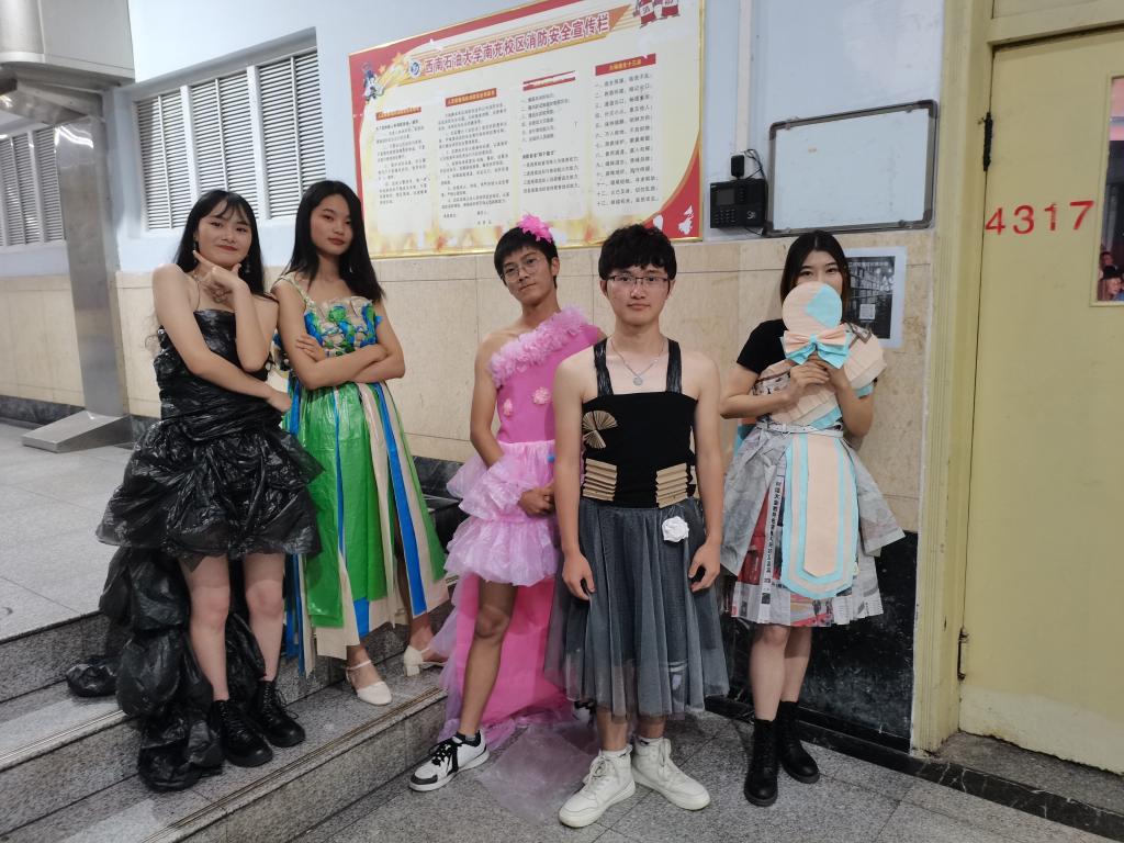 为了进一步丰富校园文化生活,增强同学们的环保意识。5月29日晚,校区学生社团民主管理委员会七彩环保协会于第四教学楼317教室举办“环保时装秀”特色T台走秀晚会。