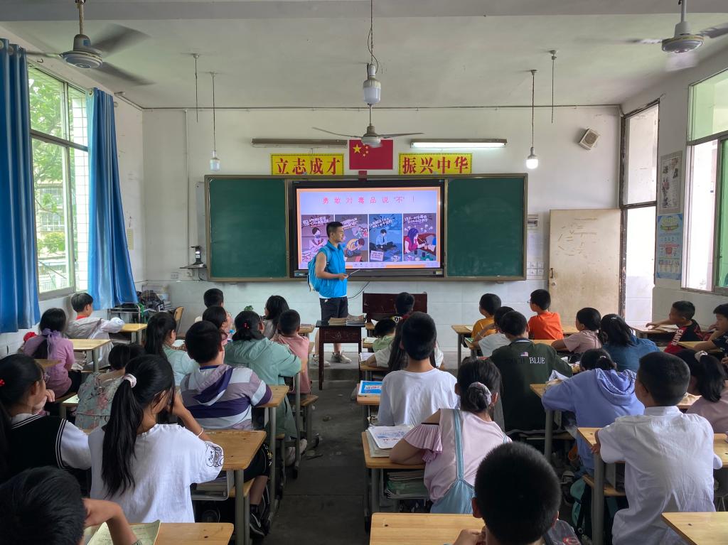 志愿者们以防范毒品的小视频作为引入点,给同学们介绍了各种各样的新型毒品。整个班会过程中,志愿者结合毒品案例的图片和视频将防范毒品的重要性讲解得生动而具体。小朋友们踊跃举手发言,积极主动地与志愿者们互动。最后,小朋友们和志愿者进行了有趣的猜数字小游戏,给班会课画上完美的句号。
