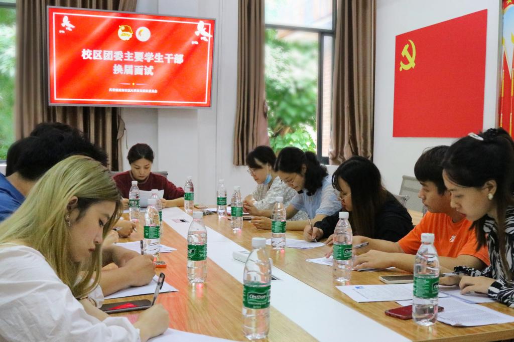 为落实校区团委换届工作,进一步遴选和培养优秀学生干部,6月18日,校区团委在外语村开展学生干部换届面试工作,校区团委书记兼学生工作部副部长随明明老师、校区团委老师李啟祥、心理健康中心江雪老师以及吴静老师作为面试官出席本次面试工作,校区团委各组织主要学生干部代表参加了此次面试工作。