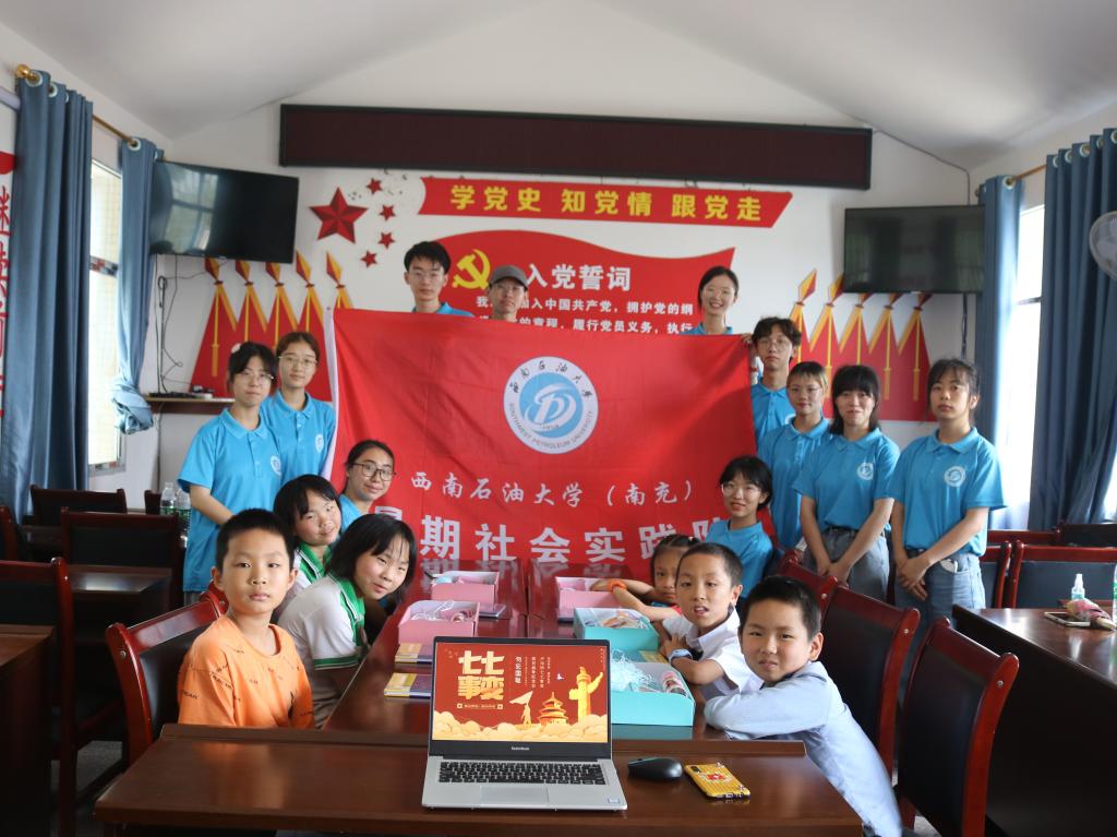 为助力留守儿童思想上健康成长,帮助留守儿童深入开展党史学习教育,加强儿童学党史、立志向、传承红色基因的思想文化教育。7月7日,财经学院 “感恩百年,童心向党”暑期社会实践队于阆中县二龙镇青树垭村组织6名留守儿童进行了主题为“铭记历史,坚定信念”的党史宣传教育活动。