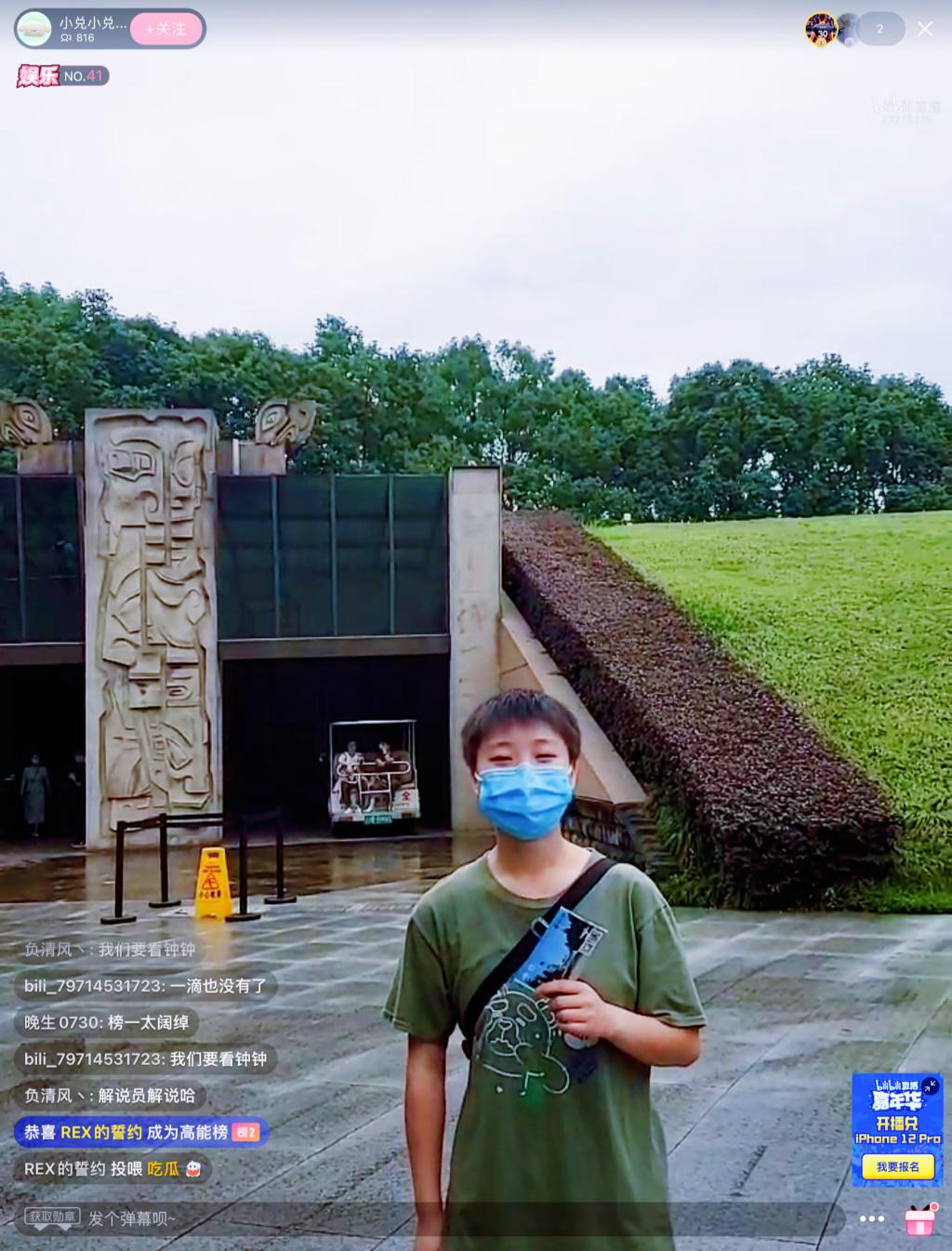 7月10日,校区团委青年传媒中心“寻迹巴蜀古文明,高唱成渝双城记”暑期社会实践队成员邀请四川广汉当地市民在三星堆博物馆以网络直播的形式带来了一场跨越时空的“千年奇妙之旅”。一个多小时的活动人气高涨,惊喜不断。数据显示,直播观众超千人,视频居户外榜第27位。