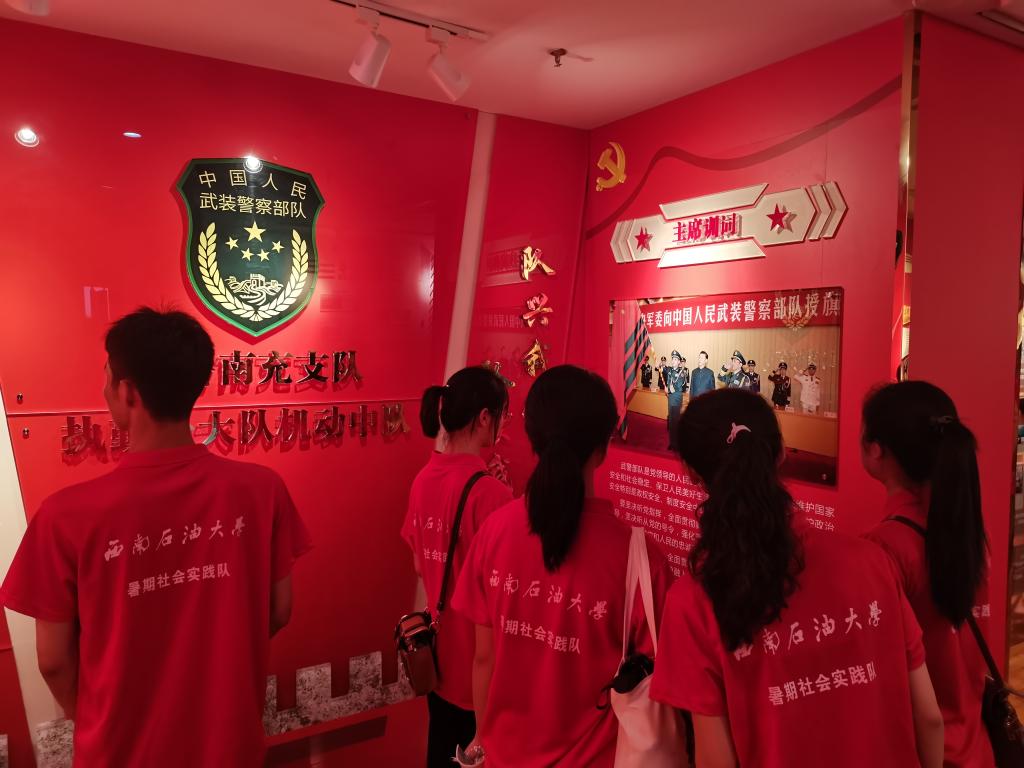 实践队员正在观摩武警某部光辉历程
