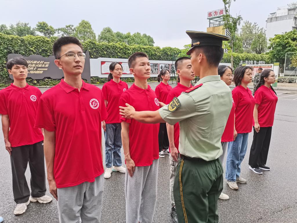 实践队员正在进行军姿训练