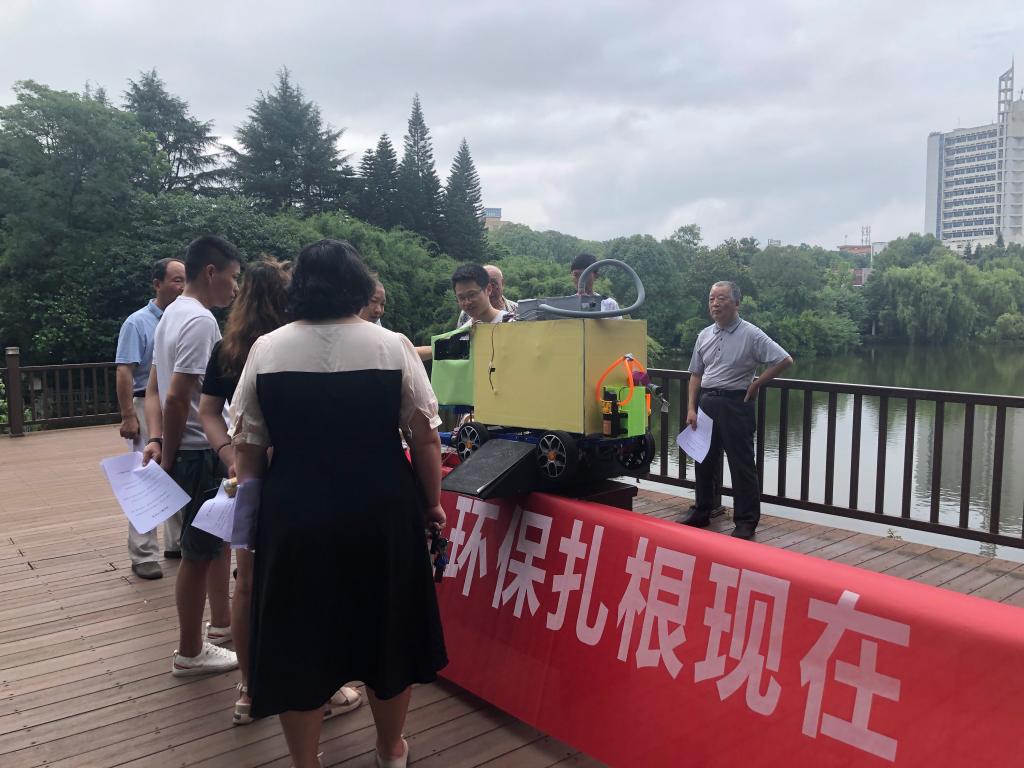 上午9:00,在机器人创新实验室龙樟老师的带领下,队员们着装统一、有序的前往龙井湖观景台。首先,由西柚绿行暑期社会实践队队长曾海森介绍了开展本次活动的背景、内容及意义。接着,队员认真的向学生和过往市民介绍了本实验室的国家级立项项目“环卫之星——垃圾清理系统”,省级立项项目“多功能水动力无人垃圾清理船”的优势,一是提高环境质量、二是高效省时省力、三是降低企业成本。然后,队员们组织学生有序的通过扫描二维码进行了问卷调查的填写,积极的参加了有奖知识竞答活动,并向参与者发放了一些小礼品。最后,由队员向在校学生以及过往市民发放水资源保护宣传册、节约用水倡议书等,并进行了水资源知识宣讲,倡导大家节约用水。