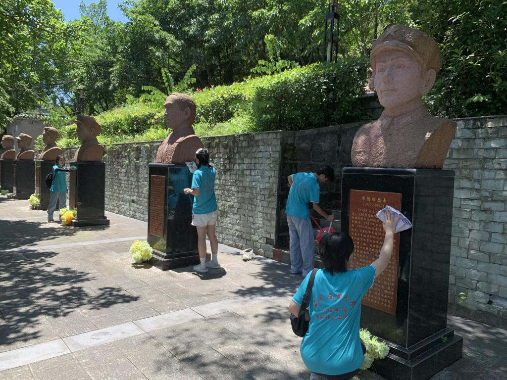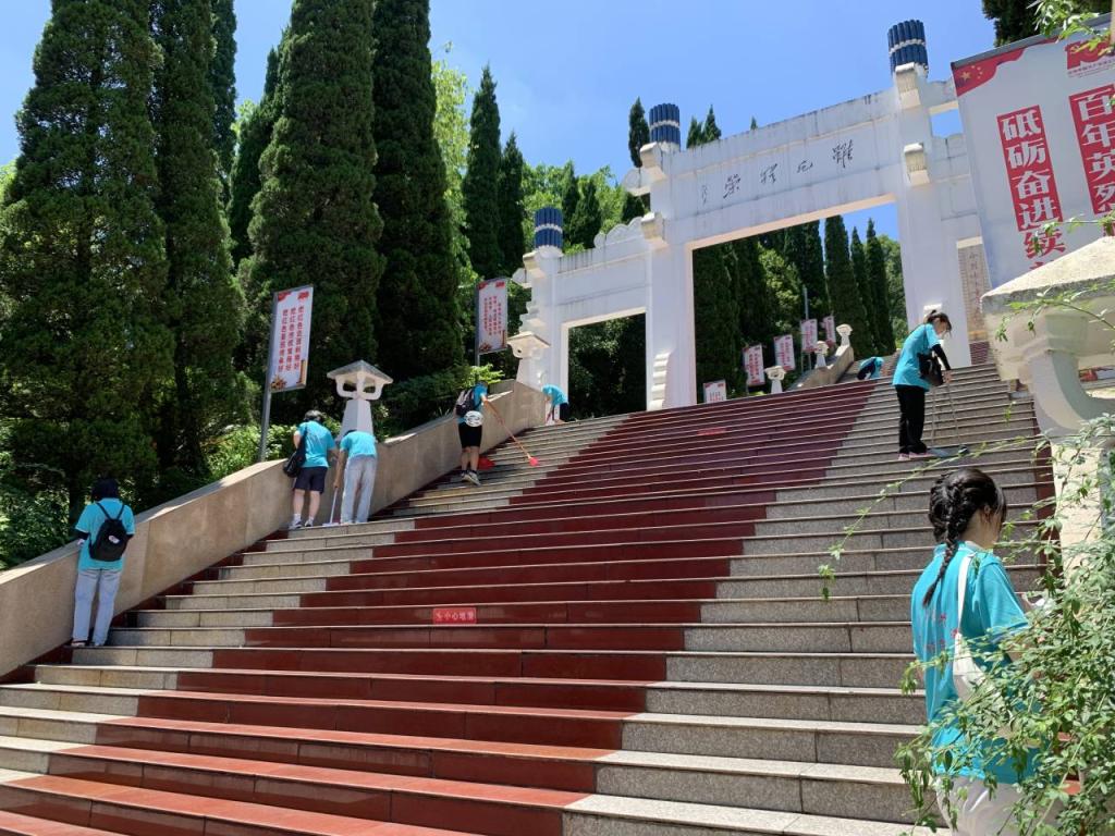7月3日下午1点,财经学院事务大巴士实践队一行人在队长的带领下带着清洁工具来到了西山烈士陵园,对西山烈士陵园进行了清洁打扫。