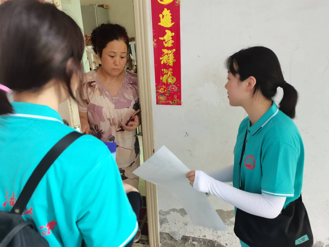7月4日下午1点,财经学院事务大巴士实践队一行人在社区监督员的带领下在居民社区以及街道旁商铺宣传绿色环保知识和绿色发展理念,调查绿色知识了解现状,居民们都热情欢迎队员们的到来,耐心倾听,积极配合。