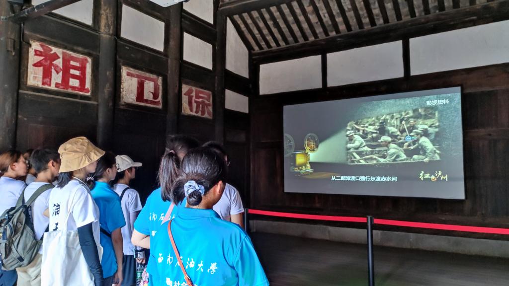 首先,实践队来到二郎滩红军历史陈列馆,在讲解员的带领下,深入学习了红军在二郎滩两次渡过赤水的历史。接着,实践队来到当年红军驻地—红军村。在这里,还流传着当年红军巧妙的发挥运动战的优势,把国民党反动派耍得团团转的故事。红军在二郎滩还没收了地方军阀的私盐,分给了赤水河两岸的贫苦群众,至今还流传着许多当年红军与百姓之间的感人故事。红军百姓鱼水情让实践队员再一次认识到“只有共产党才能救中国”。