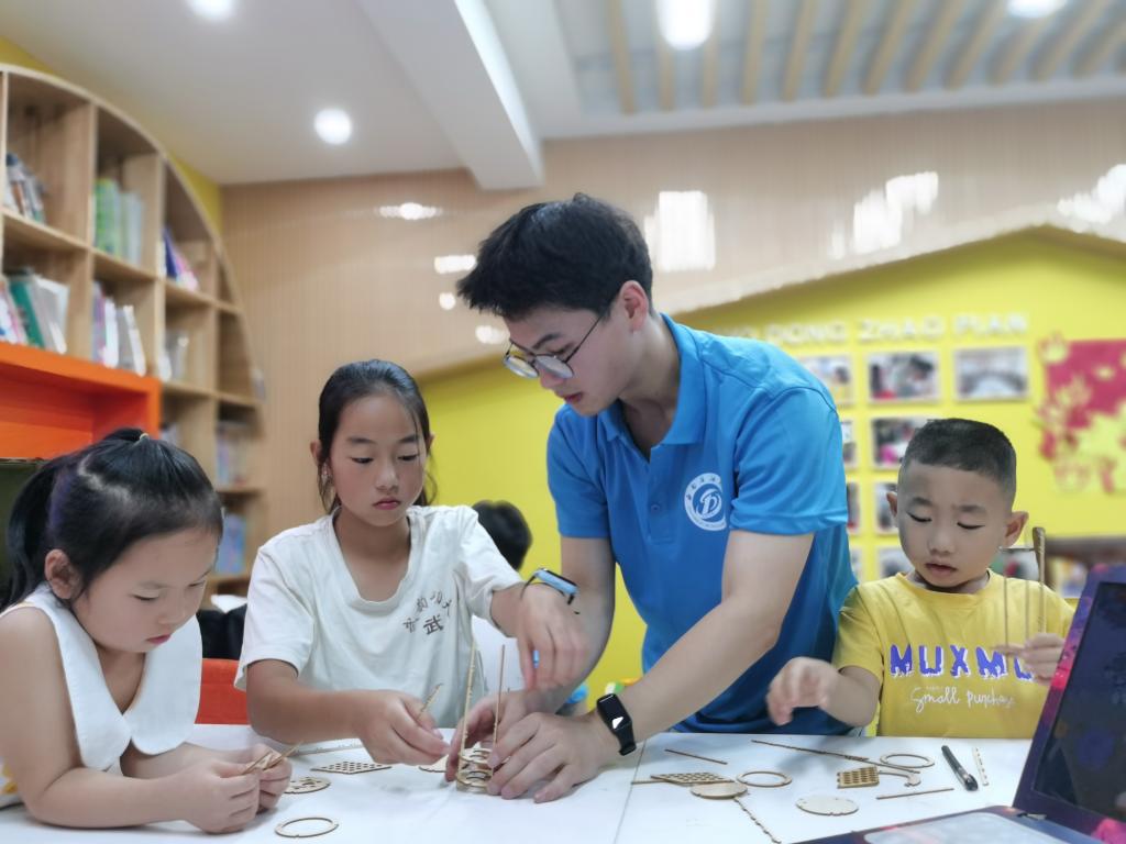 在活动中,小朋友们积极参与、举手提问,实践队员们将科普知识融入到生活实践中,让孩子们切实感受到科技所带来的魅力,有利于培养他们对于航天航模的兴趣,锻炼他们的实际动手操作能力。