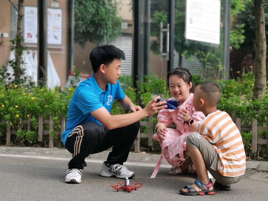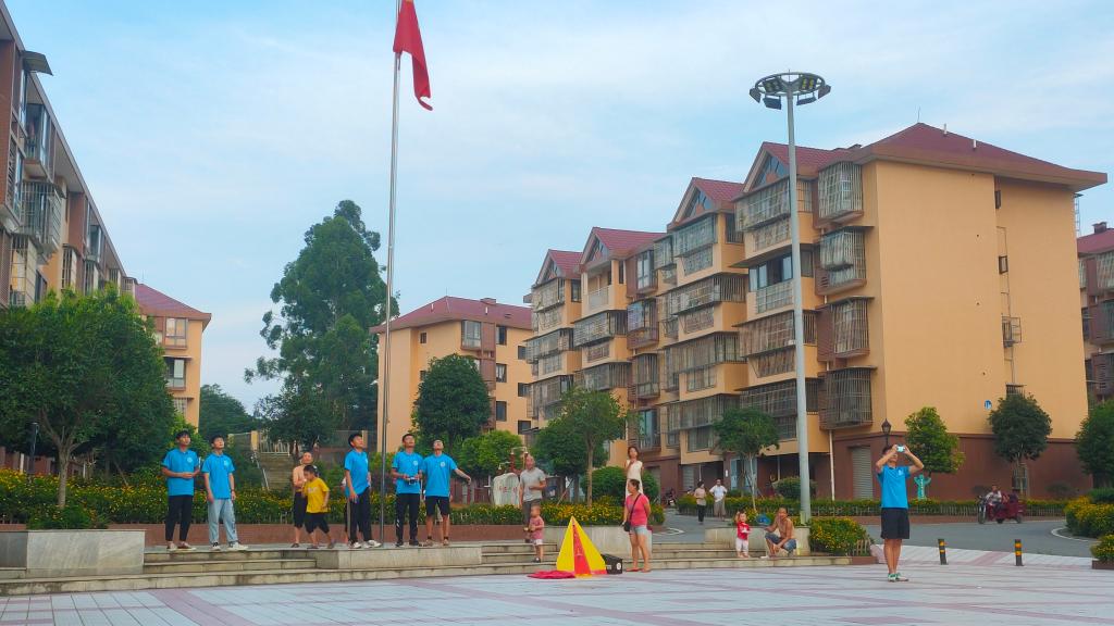 7月26日,实践队开展的长达八天的暑期社会实践活动迎来了收尾工作。上午,实践队员在泥湾村福临小区广场进行了飞行器大表演,完成了校歌《飞翔》的录制,并与孩子们合照留念。