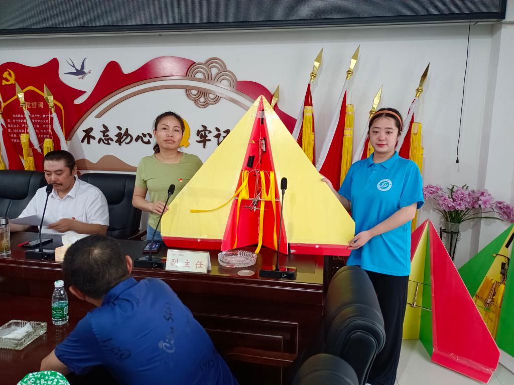 随后,队员们和村委会进行了最后的交接工作。在交接工作时,队长陈卓颖发表了讲话,代表全体队员送上了感谢信,并将三架纸飞机捐赠给了泥湾村村委会,播撒下了航天航模的梦想种子。