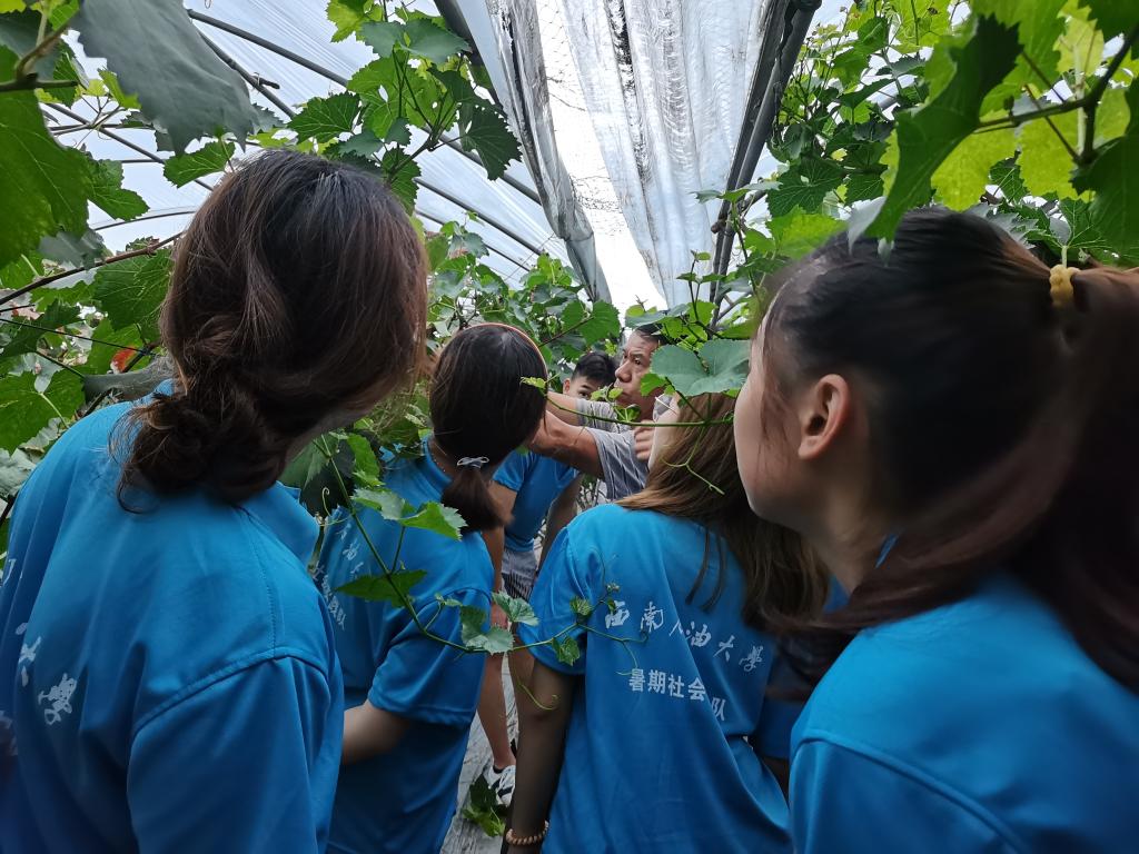 7月24日上午,实践队员们开展了实践下乡助农活动,前往当地葡萄园为果农进行果树的修剪整理。在剪枝结束后,果农赠送了队员们一些葡萄表示感谢,并合照留念。下午,实践队员前往农田干农活,帮助农民们采摘玉米和辣椒。