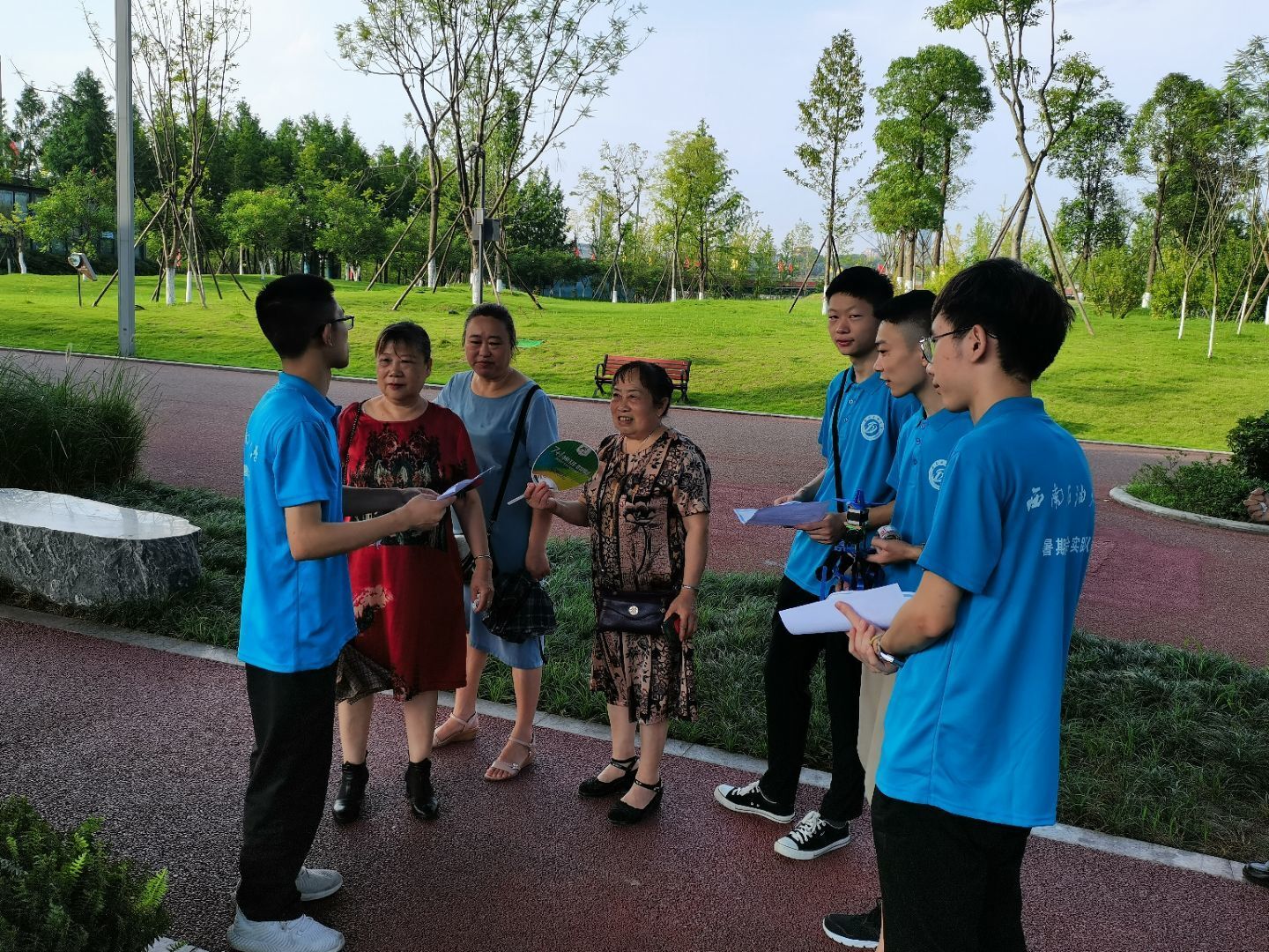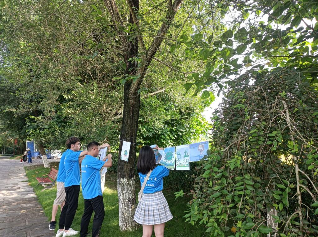 上午8点30分,在机器人实验室龙樟老师的带领下,队员们着装统一,前往湿地公园。首先,实践队一行人将宣传画悬挂于树枝上,炎炎酷暑抵挡不了他们宣传垃圾分类、倡导爱护环境的迫切心情,远远望去,一幅幅倡导大家垃圾分类,一起使地球村的天更蓝,水更清的画面让人心生感触,活动得到了过路行人的积极响应。活动现场,工作人员还带来了分类垃圾桶的图示,根据分类垃圾桶的式样为群众细致地讲解了什么是可回收垃圾、什么是其他垃圾、什么是有毒有害垃圾。随后,实践队队员为现场的居民发放了垃圾分类的宣传手册,倡导环境保护需要大家共同的努力,给活动现场增添了生机与朝气。最后,实践队一行人在公园弯腰捡起地上的纸屑和废弃塑料袋,通过自己的微小之力表示对环境问题的关注和支持。