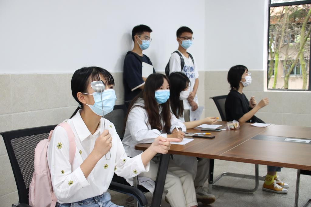 新生在志愿者的指导下测试视力