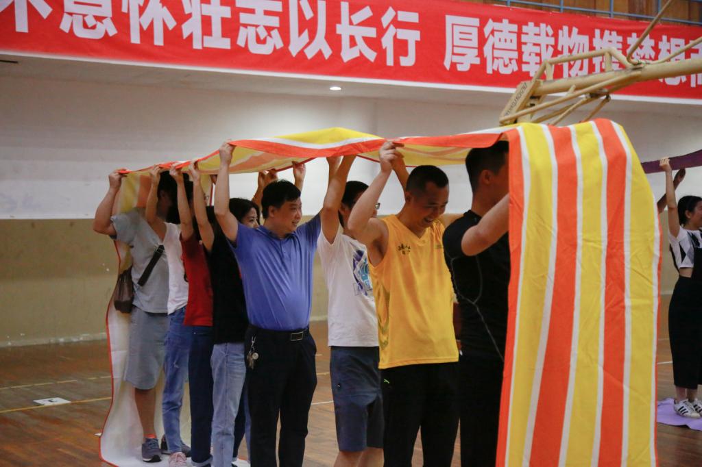 参加活动的全体学工队伍人员共分为学工部、信息学院、工程学院及财经学院四个组。第一个游戏是《无敌风火轮》,该游戏考验团队协作能力,各组老师都积极讨论战术,力求完美完成游戏挑战。游戏结束就是自由活动环节,大家自行分组开展羽毛球、篮球、跳绳等活动,本次活动在愉快、欢乐、和谐的氛围中圆满结束。