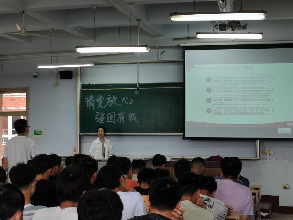 会上,各团支书从“牢记初心使命,开创美好未来”、“必须推进马克思主义中国化”、“必须加快国防和军队现代化”、“必须构建人类的命运共同体”四个方面为同学们进行了介绍。同学们一起回顾了这一百年来无数至关重要的历史时刻,感受了中国共产党为中国人民和中华民族的前途和命运带来的巨大改变,这让同学们进一步了解了中国共产党的宗旨是全心全意为人民服务,深刻感悟到了马克思主义的真理力量和实践力量。团支书号召同学们,作为新时代的大学生,要不断学习党的理论,学好专业知识,将中国共产党建立的红色江山代代相传。会上,各专业还通过宣誓、视频观看等丰富团会形式,让党的理论入脑入心。