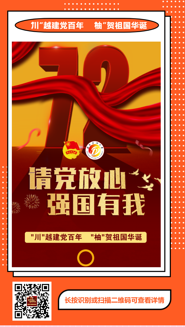 近日,南充校区团委举行了“川越建党百年 柚贺祖国华诞”红色地标打卡活动。南充校区100名团员青年就地寻访家乡红色印记,打卡四川省17个市的100处“红色地标”,并推出“川越建党百年 柚贺祖国华诞”H5红色地标地图,助力弘扬家乡的红色历史文化,致敬建党100周年,献礼祖国72年华诞。