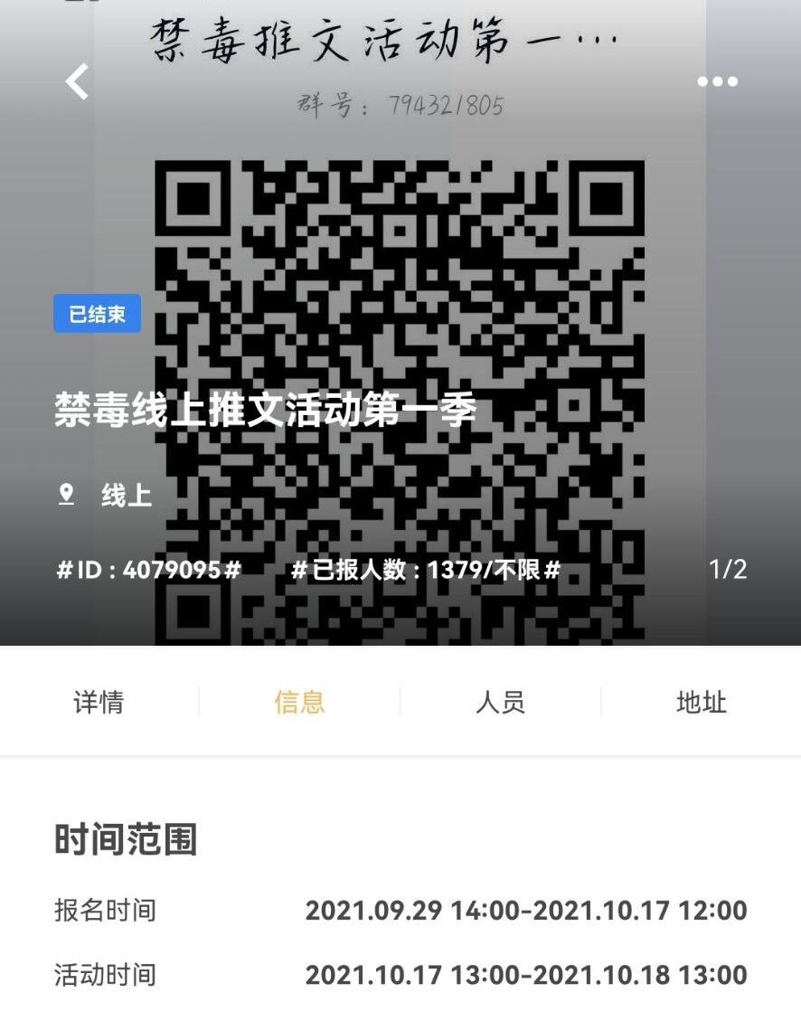 禁毒线上推文活动到梦空间报名情况