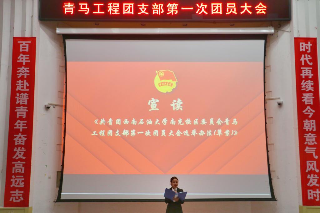 为加强“青马工程”大学生骨干培训班学员的凝聚力,提升团员干部的积极性,充分发挥共青团的桥梁和纽带作用。10月28日晚19:00,校区团委团学工作中心在第四教学楼多功能学术报告厅组织开展了西南石油大学南充校区青马工程团支部第一次团员大会。第五期青马工程全体成员参与本次大会。