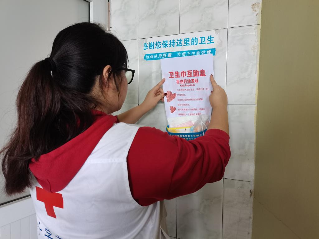 本次活动由受捐和安置两部分组成。活动日上午,志愿者们准时到达现场,在大学生服务中心前完成捐赠点的搭建。同学们积极参与,向志愿者们捐赠大量卫生巾。志愿者们对受赠物资进行统计并集中放置。下午,领取胶水、使用规则单、互助盒等用品后,志愿者在相关负责人的带领下分别在校园各个女卫生间内完成互助盒安置工作。