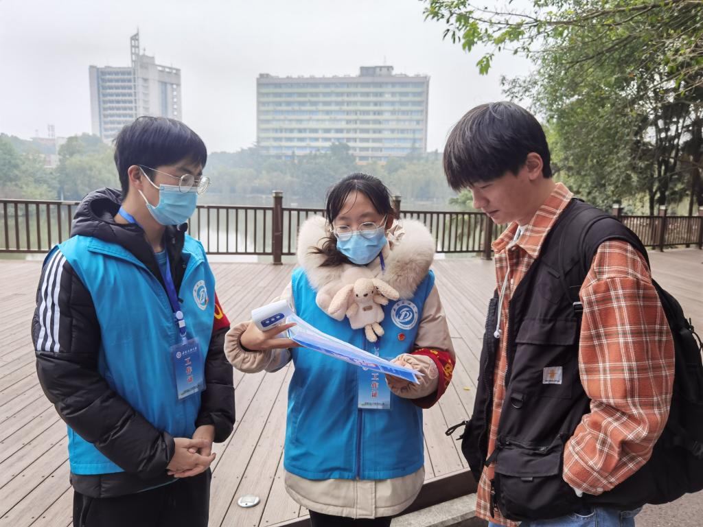 为认真贯彻落实习近平总书记关于新型冠状病毒肺炎疫情防控工作重要讲话和重要指示精神,做好疫情防控的宣传工作。11月13日至28日,校区团委团学工作中心积极配合学校疫情防控工作,开展疫情防控志愿服务月活动,第五期“青马工程”培训班全体学员分为“防疫宣讲”、“志愿执勤”、“防护督促”、“志愿监督”四组积极参与到此次志愿服务活动中。