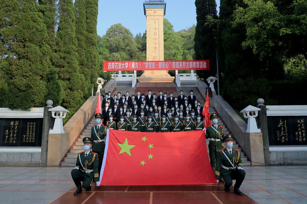 清明时节,为赓续革命精神,传承红色基因,厚植家国情怀,4月3日上午校区团委开展了以“学党史 明初心”为主题的线上线下祭奠英烈系列活动,引导广大团员青年学党史、感党恩、听党话、跟党走。参加本次活动的有:南充市烈士陵园服务中心主任唐洪义、西南石油大学南充校区团委书记兼学生工作部副部长随明明、学生教育管理科科长李长海、国旗护卫队、青马班、习研会和红柚志愿者协会的学生代表。