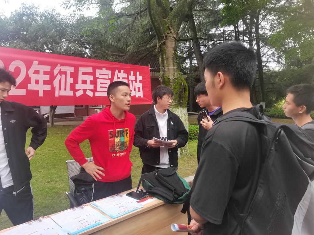 2022年5月19日,为了响应国家强军号召,激发大学生参军报国热情,鼓励适龄青年积极应征入伍,军协青年协会协助校区武装部于西南石油大学南充校区食堂门口开展征兵宣传活动。