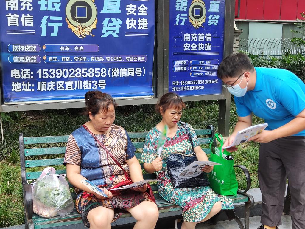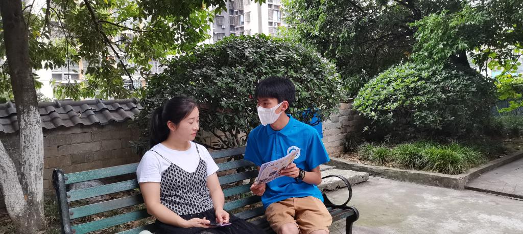 实践队队员向小区居民介绍实践内容
