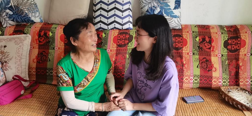 实践队员来到小区后,了解到该小区居住的大多是退休老人,子女普遍在外购房或工作,老人们的日常活动范围非常有限,一般仅仅出门买菜和在小区周围进行活动。实践队员询问社区详细情况,最终决定前往独居老人较多的4号楼展开相关实践活动。实践队员拿起清洁工具和老人一起进行家务劳动,除此之外,还和老人坐在一处,听老人讲过去的故事,了解老人的精神世界,同时实践队员还了解到老人对于智能手机的使用较为困难,耐心地给老人讲解手机按键的基本操作并着重演示了疫情防控期间健康码的展示流程。实践队员一对一指导老人在微信小程序找到四川天府健康通,并在演示完毕后帮助老人自己上手操作。