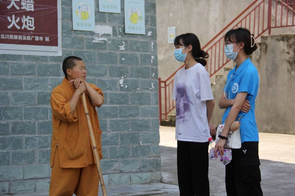 在探寻的过程中,实践队员们有幸采访到了一位僧人,她说:“大禹是北川的保护神,把大禹像树在广莲寺,就是为了祈求大禹能够保佑北川风调雨顺、保佑羌族人民无病无灾。我们感恩大禹的功绩,为他修庙筑店,尊他为‘禹神’,北川曾是他治理过的地方。”“艰苦奋斗、勤俭廉洁、公而忘私、以民为本、广纳民意、严于律己”,这是郭水林先生对大禹精神较为完整而纯粹的总结。大禹治水精神是中华民族精神的源头和象征,大力弘扬大禹治水精神在实现中华民族伟大复兴的中国梦的伟大进程中有重要的现实意义。千百年来,代表济世情怀、奋斗精神、创新追求、科学态度、开放胸襟的大禹精神作为一种文化基因,深植于一代代羌族人民的血脉中。