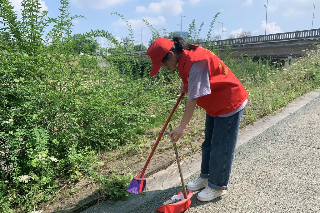 在活动过程中,实践队员们顶着烈日也热情洋溢的进行清扫活动,展现了实践队员阳光向上,精神饱满的良好状态。实践队员分成两队,分别对不同区域进行打扫,一部分人手拿扫把簸箕,其他人则手拿火钳夹。在大家齐心协力的合作下,社区街道被打扫的干干净净。实践队员也对随地摆放的共享单车进行归位,避免妨碍车辆正常通行。活动过程中,实践队员到社区拜访了一对失独老人。据了解,老爷爷是一名光荣的退役军人,曾立下三等功。他在聊天时谈到:“国家现在的养老政策也很完善,我们也不担心什么养老问题。主要还是感谢国家,感谢党。”实践活动虽然持续的时间不长,但对每个实践队员来说都是一次特别的体验。只有每个挂职同学将自己的责任心放到最大化,才能更好的落实基层工作。