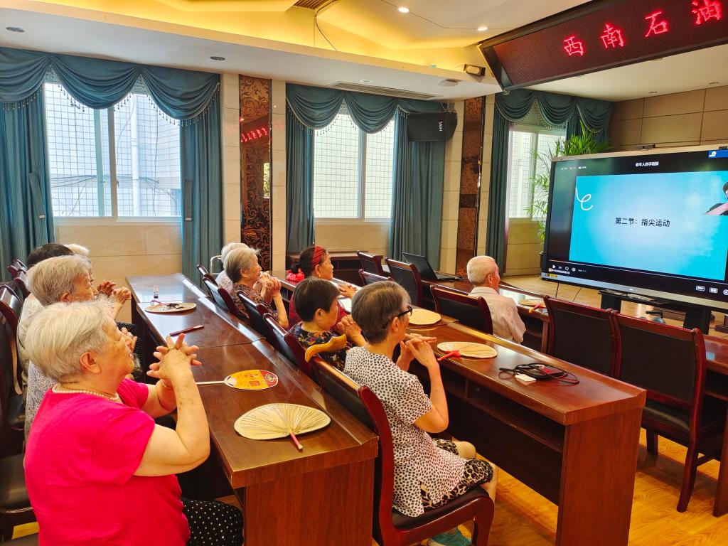 老人们进行学习手指操