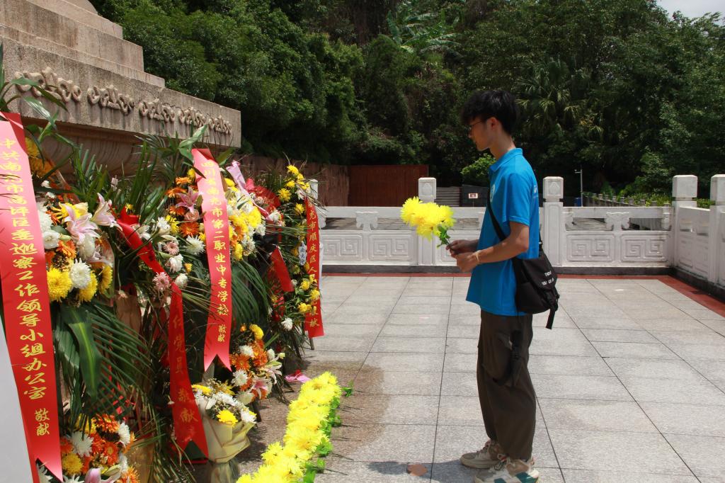 队员为烈士献花