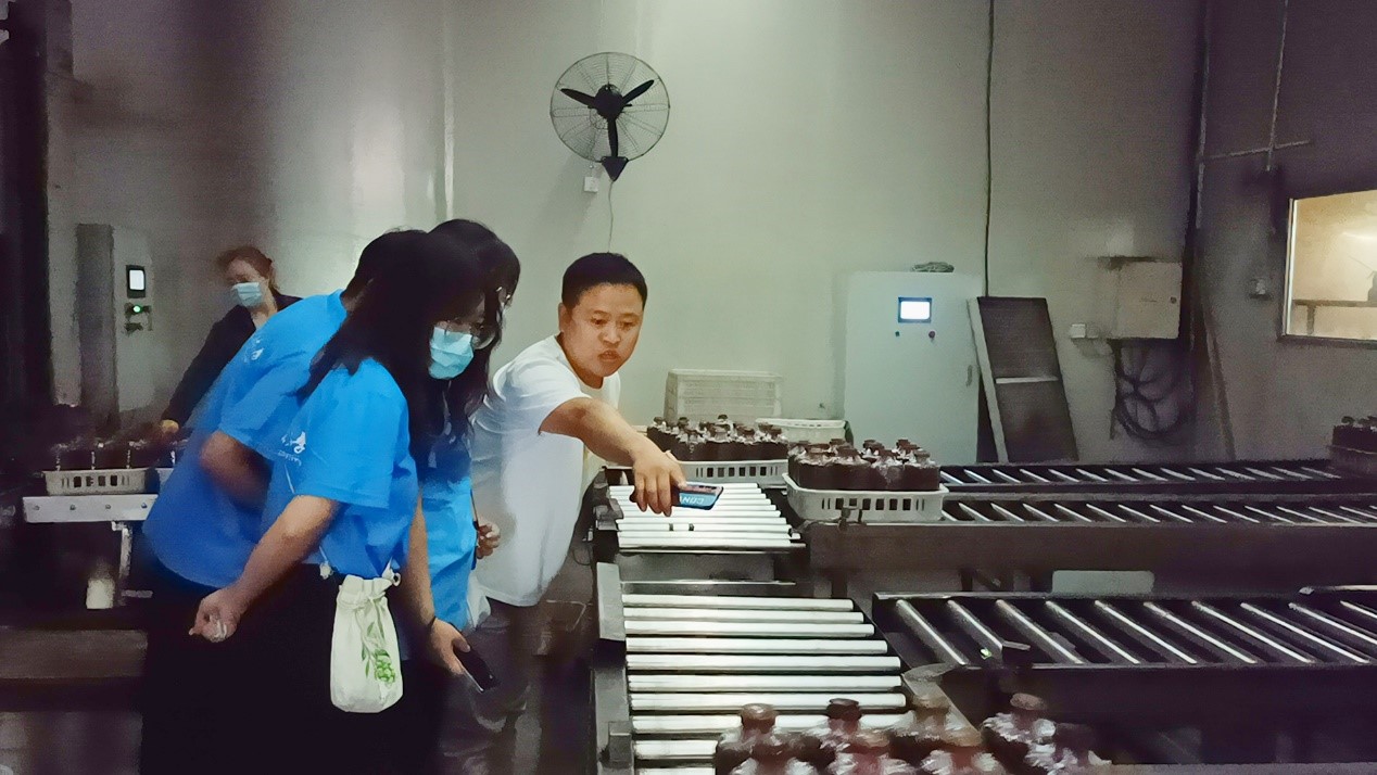 实践队首先来到了琪英菌业生产基地,基地占地约五万平方米,分为培养车间和出菇车间两大类。实践队在生产厂厂长郭联藻的带领下参观学习了杏鲍菇从接种到发货的全过程,在削菇车间,队员们在员工的指导下带上手套进行削菇实操。此外实践队还了解了琪英菌业的扶贫制度以及对蓬溪当地的贡献。随后实践队前往骆峰菌业生产基地调研学习,基地主要进行“骆菌子”——黄色金针菇的生产,据行政主管李剑介绍,黄色金针菇是骆峰菌业自主研发的新品种,较市面上常见的白色金针菇口感更加嫩滑。基地正在进行二期三期工程的建设,未来将会种植更多品种的菌类。