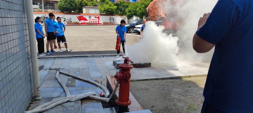 上午九点,实践队员在教官的指导下开始列队训练,随后进行了双重连结、床单连结以及双绕双节的结绳学习。接着消防队和实践团队进行了消防灭火的实践演习:使用干粉灭火器进行油盆灭火。活动中实践队员积极尝试。下午三点,全体实践队员与高坪区消防支队消防官兵开展座谈会,针对本次实践活动进行个人和团队总结。