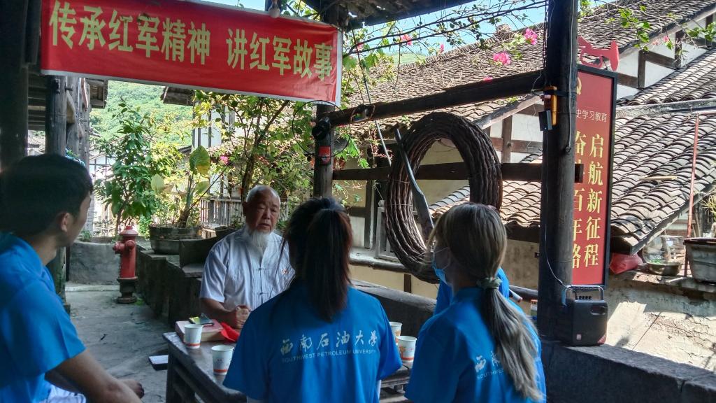 为深入探访红军在古蔺太平的事迹,了解并传承红色精神。2022年7月10日上午,西南石油大学南充校区“星星之火,柚遇泸州”暑期社会实践队一行七人走进太平古镇,拜访了红军烈士后人胡敬华老先生。
