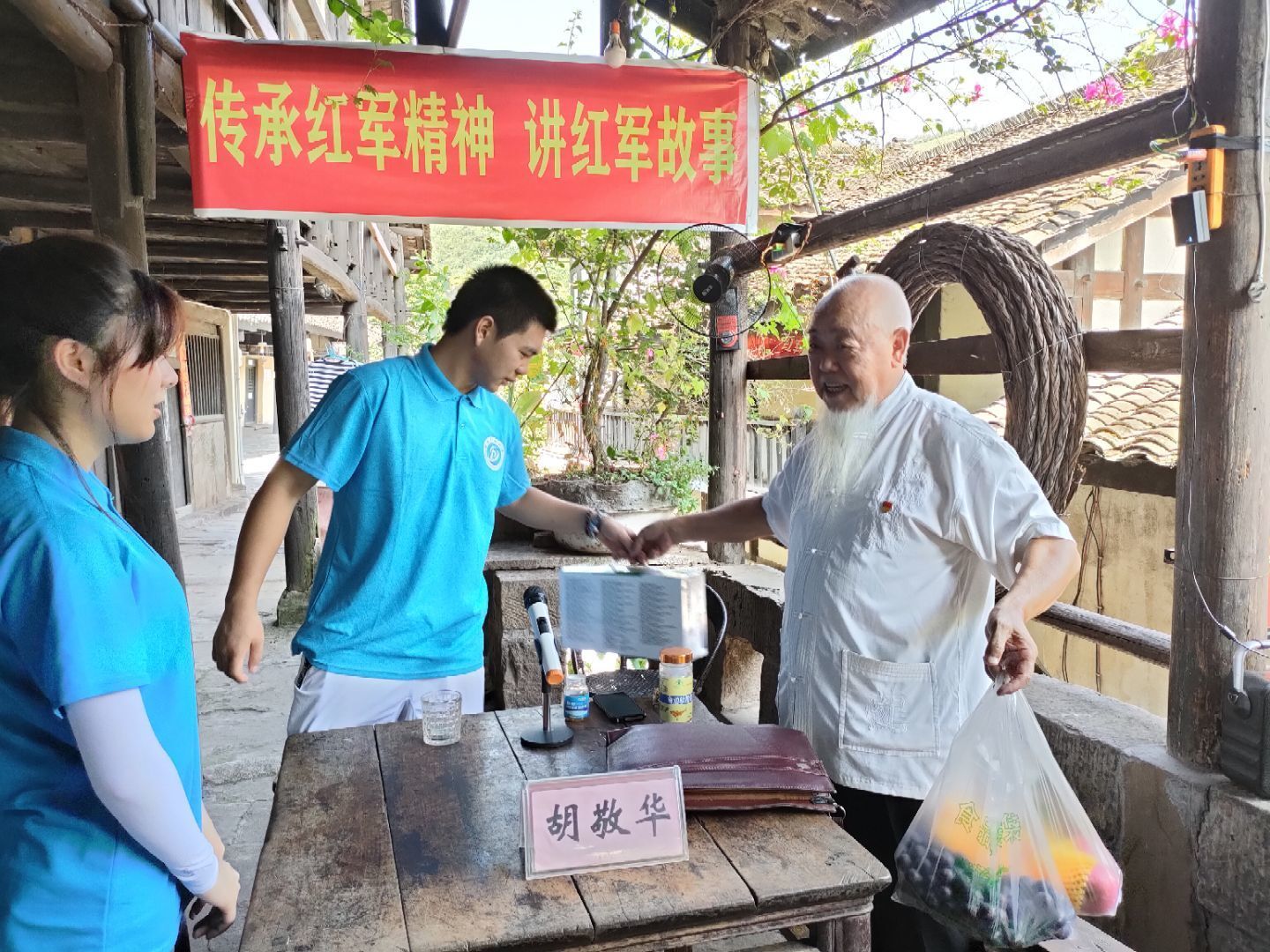 我们在胡敬华老先生的家中了解到革命烈士的先进事迹。胡敬华老先生为大家讲述了他的父亲胡道财的故事: 1929年胡道财参加红军,先期在红一军团当兵,历经中央苏区的历次“反围剿”作战。1935年1月,在习水县土城的青杠坡战斗中被炸伤,但他忍住剧痛,拖着受伤的腿,奇迹般地走到云南扎西又东返黔北,完成了著名的四渡赤水战役。后由于伤口化脓、感染严重无法行军,由部队交由当地地下党组织救护,留下三块银元供他养伤。那三块银元后作为胡敬华家中的传家宝,供后人谨记历史,传承红色精神。