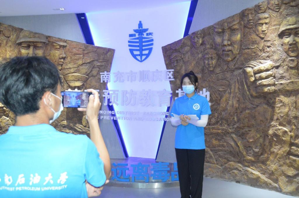 为充分发挥宣传阵地在毒品预防教育中的重要作用,进一步营造良好的禁毒宣传氛围,加强禁毒宣传力度,预防毒品违法犯罪的滋生和蔓延。2022年7月12日上午10:00,“无艾青春,瘾以为戒”校区团委暑期实践队参观南充市顺庆区禁毒预防基地并开展直播活动。