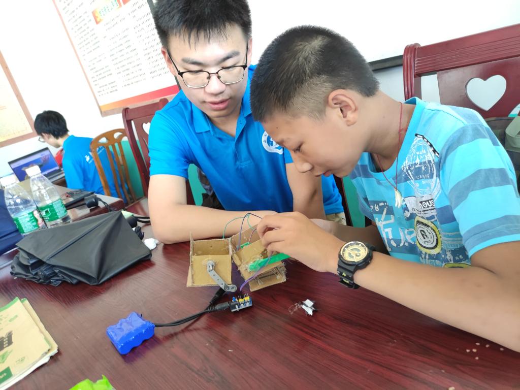 实践队员带领小朋友制作机器人