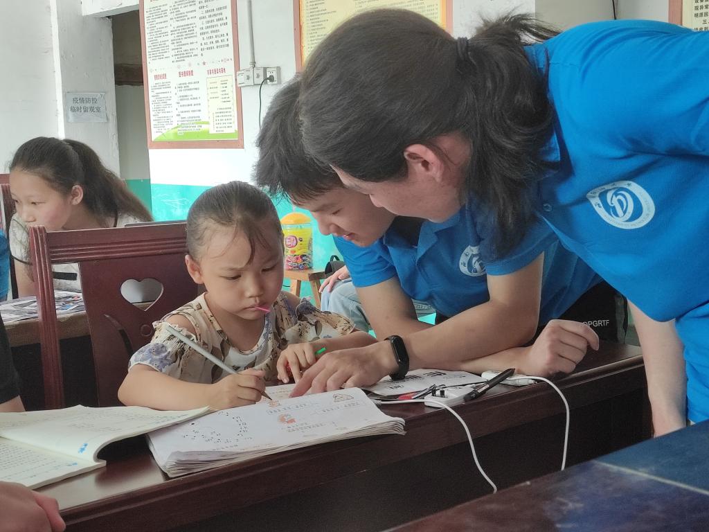 活动过程中,实践队员进行“一对一”服务,开展心理健康引导、励志教育、课业辅导、科学启蒙、课间娱乐等内容的爱心活动。一名实践队员对应一名鲜江村儿童进行辅导,进行暑期作业答疑解惑的同时,对他们的知识体系进行补充与建设。在学习之余,实践队员组织小朋友们参加123木头人、老鹰抓小鸡等各式各样有趣的小游戏,让小朋友们劳逸结合,高效学习。“很这次活动帮助我在暑假中不断进步,对于我的基础也有非常好的巩固提升作用,十分感激大哥哥大姐姐们对我的帮助。”溪头中学九年级的陈闹芸感激地说。